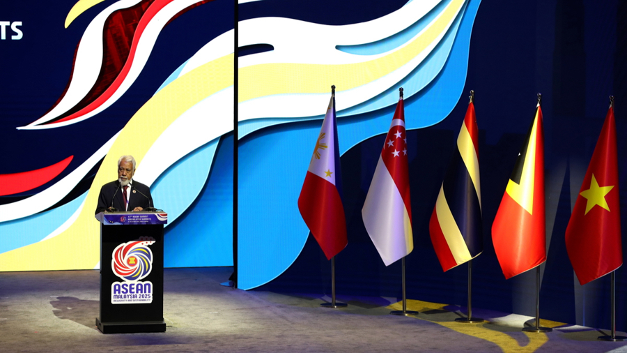 10月26日,在马来西亚首都吉隆坡,东帝汶总理夏纳纳在第47届东盟峰会及系列会议上发言。\n 新华社发